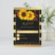 Elegant RSVP card featuring sunflowers on fall leaves with floral swirls in rose gold and gold on a gold striped background. You can choose another colour to replace the black if you like.