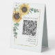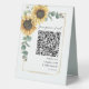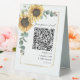 Sunflower Greenery Honeymoon Fund QR Code Wedding Table Tent Sign featuring a modern layout with geometric frame on white background. Easily repurpose this for other special events.