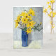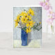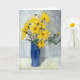 Greeting Card with a blue vase of sunflowers, from an oil pasel painting. Left blank inside for your own message