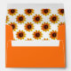 Orange envelope lined with a sunflower pattern.