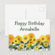 A pretty field of yellow sunflowers decorates underneath your custom Happy Birthday message. A beautiful flower birthday postcard for a cheerful, happy friend. Customise your own message above the floral design.
