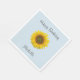 Custom floral Happy Birthday party napkin with a yellow sunflower on a pale blue background. Black lettering can be customised with your own message. A lovely addition to that special someone's birthday celebration!