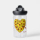 Uplift your mood by decorating your drinkware with this eye-catching sunflower heart water bottle. Bold amber colors are central to this design. Make this water bottle your own by adding text and background color. I created this design using an image from my original acrylic painting.