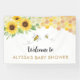 This template features beautifully hand painted watercolor sunflowers, roses and honey bees in a gender neutral colour palette.