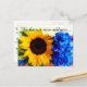 This postcard features a mixed media painting of a cheerful yellow sunflower and blue hydrangea flower. Personalise the front and back to let others know you've just moved to a new house or location.