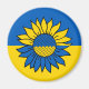 Sunflower as a symbol of peace and work on the background of the Ukrainian flag. The hard-working people of Ukraine will be able to rebuild their destroyed country.