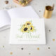 Make it easy for your wedding and party guests to leave you a message with this sunny yellow floral wedding green guestbook. This charming flower guest book features watercolor yellow sunflowers lovingly nestled in mint greenery with Just Married printed in an elegant script. You can personalise the book with the names of the bride and groom, This charming yellow sunflower guest book is perfect for your romantic summer, spring, garden, or botanical shabby chic wedding. Please scroll down to view additional floral wedding products and gifts you may enjoy.