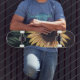 Original painting of a sunflower in the dark. Created by using acrylic paint and spray paint.