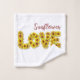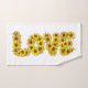 Decorate your bathroom with these eye-catching sunflower "love" towels. This design prominently incorporates vivid amber elements. Express yourself by experimenting with different background colours.