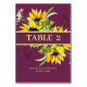 Floral Magenta Purple wedding table card is created to be part of the Floral magenta purple collection . Sunflowers' bouquet has the main role in design due to its position and size. The stripe, that is the same colour as the whole invitation, make an illusion that holds the bouquet and gives a special visual effect. This Wedding table number card template combines two size of the same font for more dynamic look.