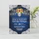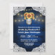 Sunflower Mason Jar Rehearsal Dinner Invitations - feature a royal navy or blue barn wood background trimmed with lace and decorated with warm coloured string twinkle lights. The design also features a bouquet of sunflowers inside a mason jar that you can customise the initials to those of your choice. The back also features the same country rustic background to match the front.