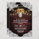 Sunflower Mason Jar Wood Bridal Shower Invitations - feature a deep red barn wood background trimmed with lace and decorated with warm coloured string twinkle lights. The design also features a bouquet of sunflowers inside a mason jar that you can customise the initials to those of your choice. The back also features the same country rustic background to match the front.