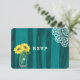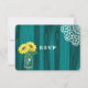 Stylish, country rustic invitation RSVP card in a teal wood grain effect with a pretty mason jar vase full of yellow sun flowers and a pretty white lace pattern on the edge. Ideal for barn weddings and Thanksgiving fall time weddings.