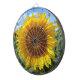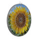 Close up of a sunflower taken against a backdrop of a field of sunflowers