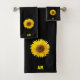 Sunflower & Monogram on Black Bath Towel Set