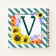 A cute monogram notebook with sunflowers and diagonal teal stripes.