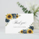 Sunflower Navy Blue Floral Rustic Wedding Thank You Card