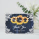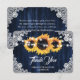 Sunflower Navy Blue Rustic Wood Lace Wedding Thank You Card