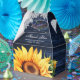 Sunflower Navy Blue Wood Lace Lights Wedding Favour Box