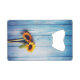 A lovely photograph of a pair of brilliant yellow gold sunflowers on a rich aged blue wooden wall.