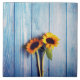 Sunflower on Blue Wood Wall Tile