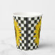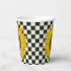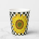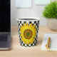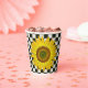 Premium quality paper cup features a cheerful gigantic bright yellow sunflower against a faux-stitched black & white chequerboard quilt background. Great for indoor or outdoor entertaining & for any occasion! See coordinating products.