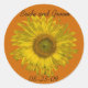 Customise these pretty Sunflower on Orange Wedding Envelope Seal Stickers. Add the personal names of the bride and groom and specific marriage ceremony date to create your own custom wedding stickers or Save the Date envelope seals. These elegant custom floral wedding envelope seals feature a blooming yellow sunflower blossom on an orange background. Perfect for your classy June, July or August summer; September, October or November fall or sunflower wedding theme.