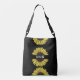 Sunflower on Solid Black Monogram Name Crossbody Bag