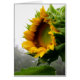 Sunflower is beginning to open on a misty morning in our New Hampshire garden.