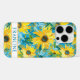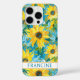 Customize this colorful modern sunflowers on teal painting iPhone 16 pro case with your your name in a trendy modern CAP font in teal on white. It's so beautiful and happy!