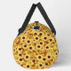 Large Duffle Bag in a field of sunflowers pattern in shades of gold, yellows and browns