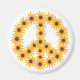Painting of a sunflower, used to form a peace sign, printed on magnets.