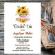 Invite your friends and loved ones to your bridal tea with this rustic invitation featuring a beautiful combination of bright, bold sunflowers and delicate pink roses in and around a rustic teacup, perfectly capturing the joyful spirit of a bridal tea party celebration.