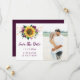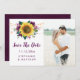 These save the date cards feature rustic watercolor sunflower and plum purple floral rose design with string lights. They are part of a collection which includes a full range of matching wedding invitations and stationery. Personalise them with your own text and photo. Please visit our store to see the full range of items that you can personalise for your wedding.