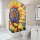 Vibrant watercolor painting of a close up of a sunflower in bright colours.