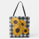 Carry your daily essentials with joy and purpose with this striking double-sided tote featuring radiant sunflower photography on a bold black buffalo plaid background. The front bursts with sunflower detail, while the back showcases Psalm 148:1-4 in full: “Praise the Lord from the heavens; praise Him in the heights above...” A perfect companion for farmers markets, gardening outings, or everyday errands, this tote blends rustic charm with spiritual inspiration. Makes a thoughtful gift for gardeners, nature lovers, and faithful hearts alike.