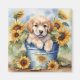 Watercolor Sunflower Puppy, this design features a cute and adorable Puppy in a Bucket with Sunflowers done in watercolor.