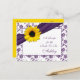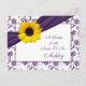 The text on this sunflower violet purple and white damask recipe card for the bride to be is fully customisable. You can change it using the personalise option. For more extensive changes to the postcard, including changing the font, font colour, or font layout, choose the customise option. This recipe card can be enclosed in the matching bridal shower invitation so that bridal shower guests can fill out the back with their favourite recipes and bring the card with them to the shower as a wedding keepsake for the bride to be. You could also use this in a birthday party invitation by changing the text on both the invitation and this card. The matching invitation is shown below.