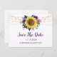 These save the date cards feature rustic sunflower and purple rose design with string lights. They are part of a collection which includes a full range of matching wedding invitations and stationery. Please visit our store to see the full range of items that you can personalise for your wedding.