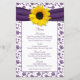 You can customise the text on this elegant sunflower violet purple and white damask floral wedding or special occasion menu card. To change the text, use the personalise option. For more extensive changes to the menu, including changes to the font, font sizes, font colour, or text placement, use the customise it option. A beautiful and classic choice for a wedding in the fall or summer or any other special occasion such as a retirement, anniversary, or birthday party. Sophisticated purple, yellow, and white is always a stylish choice. Sunflowers add a sunny feel.