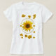 This pretty floral t shirt features a photograph of a large yellow sunflower with the wise saying, "Don't worry, don't hurry and don't forget to smell the flowers." The wise words form a circle round the main sunflower. Scattered around the main flower are smaller sunflowers.