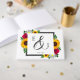 Design features elegant sunflowers, roses, and daisies with a golden yellow, pink and white colour palette. Design also features a charcoal grey frame. You can change the background colour on the front and back to the colour of your choice or leave both set to white.