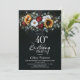 Sunflower Rose Floral Black 40th Birthday Party Invitation