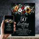 Invite your friends and loved ones to your birthday celebration with this sunflowers and roses floral black 50th birthday party invitation. The customizable text area in this invitation template allows you to include all the necessary details for your special birthday celebration, including the date, time, venue, and RSVP information. A variety of paper types and corner styles are available for your unique invitations, along with the option to download if you prefer a digital format.