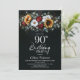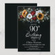 Sunflower Rose Floral Black 90th Birthday Party Invitation