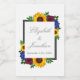 Design features elegant sunflowers, roses, and wildflowers with a golden yellow, burgundy and blue colour palette. Design also features a charcoal grey frame. You can change the background colour to the colour of your choice or leave it set to white.