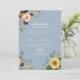 Immerse your guests in the charm of your special day with our modern boho all-in-one wedding invitation! Embrace the beauty of botanicals and rustic sunflowers against a serene dusty blue backdrop, setting a whimsical tone for your celebration. Featuring a sleek QR code for convenient online RSVPs and a website link, along with a sweet photo of the happy couple, this invitation effortlessly combines modern convenience with timeless elegance. Complete with simple calligraphy script for a touch of sophistication, it's the perfect way to announce your love story in style.