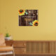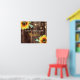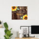 Country-style Happy Birthday sign with bright yellow and orange sunflowers and sparkling string lights on a rustic wood background. Personalize with her name or any text you choose