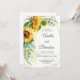 This rustic wedding invitation features yellow sunflowers paired with eucalyptus greenery. The cheerful botanical design creates a bright and welcoming country atmosphere. Perfect for summer or fall rustic weddings. A joyful invitation for warm and sunny celebrations.