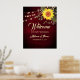 Welcome to a fall celebration with our elegant, boho-inspired wedding poster. Set against rustic barn wood and adorned with vibrant sunflowers, chic gold botanical lace, and string lights, this modern design features trendy calligraphy script. Perfect for adding a touch of charm and warmth to your autumn wedding.